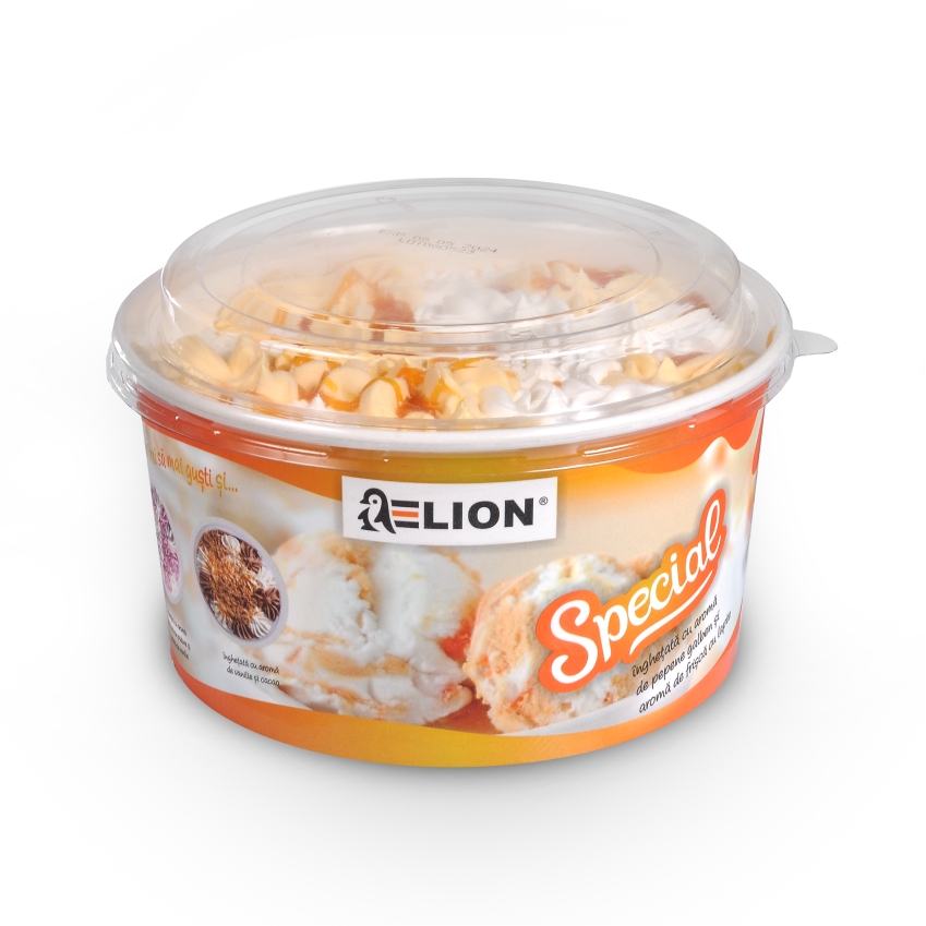Ingrediente: lapte degresat reconstituit, zahăr, smântână (din lapte) (12 %), sirop de glucoză,