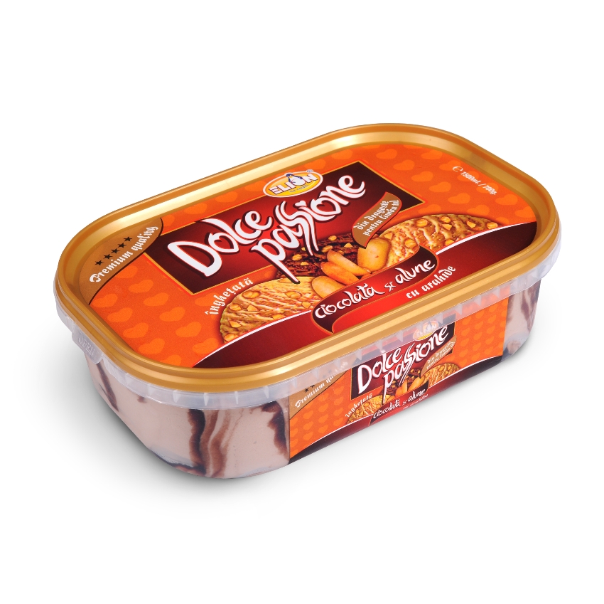 ICE CREAM DOLCE PASSIONE  WITH CHOCOLATE AND HAZELNUT FLAVOR WITH PEANUTS
