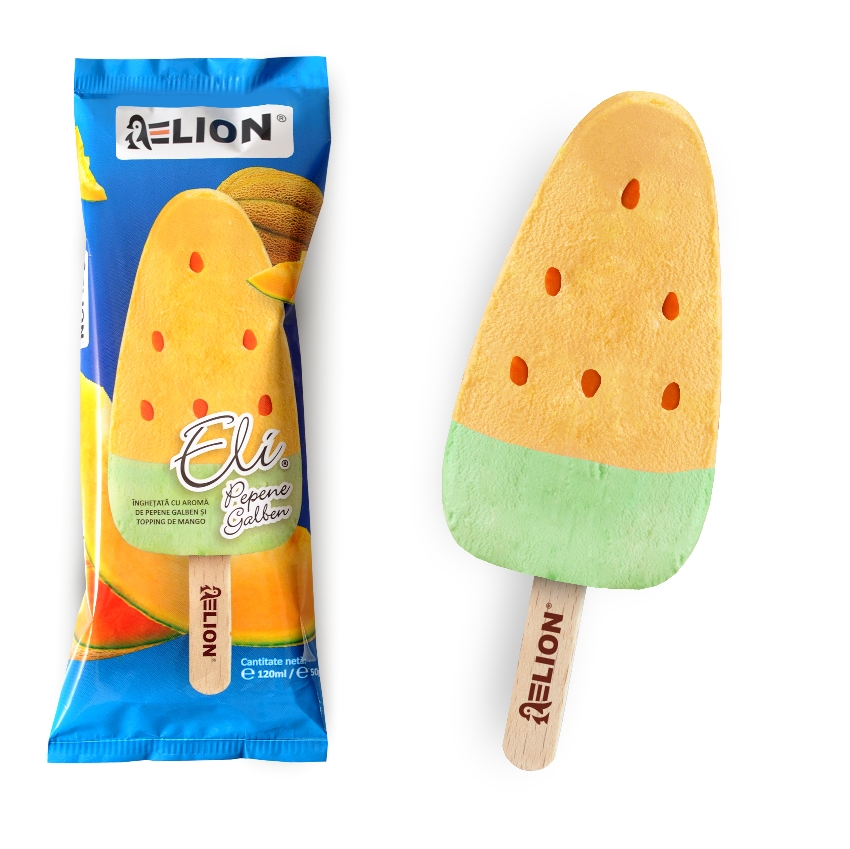 ÎNGHEȚATĂ ELI PEPENE CU AROMĂ DE PEPENE GALBEN CU TOPPING DE MANGO