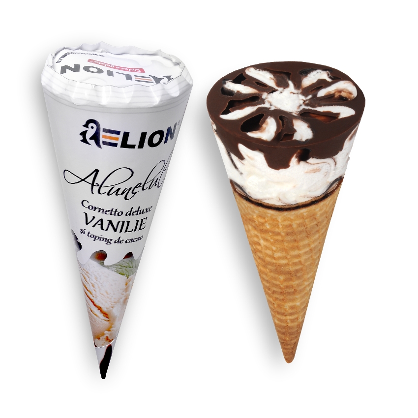 ÎNGHEȚATĂ ALUNELUL CU AROMĂ DE VANILIE ȘI TOPPING DE CACAO